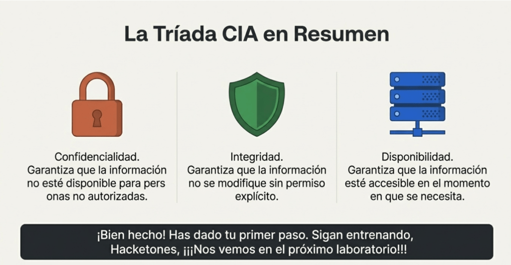 Tener una comprensión clara de cada componente de la Tríada CIA permite evaluar el impacto de cualquier incidente y decidir la respuesta adecuada.