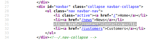 Por ejemplo, verá el enlace de la página de contacto en la línea 31:
