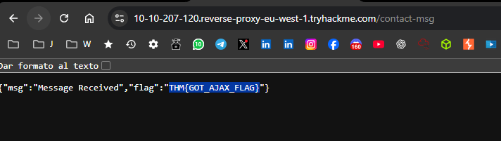 - Resultado: en la respuesta aparece la flag: THM{GOT_AJAX_FLAG}.