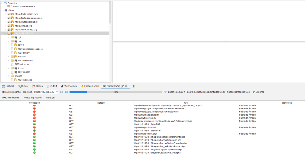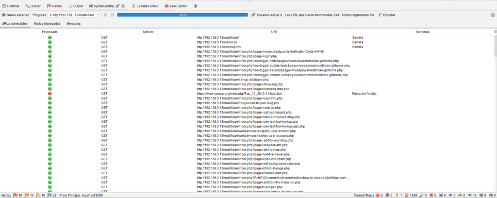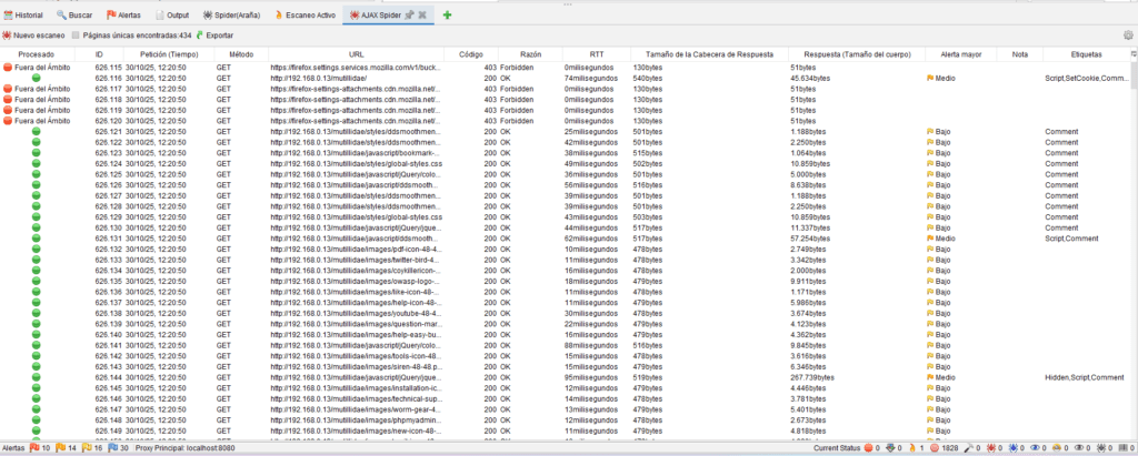 - Verás las URLs encontradas en la pestaña AJAX Spider.
