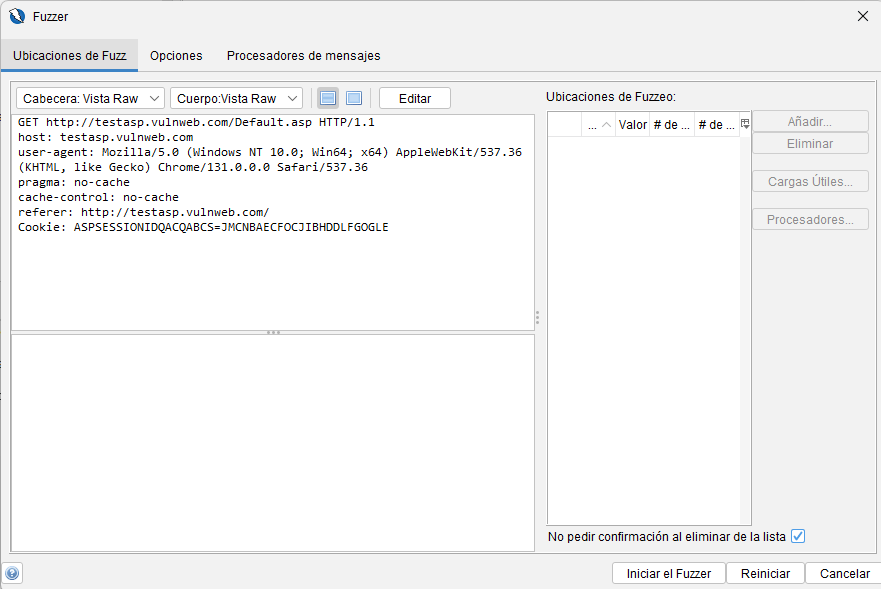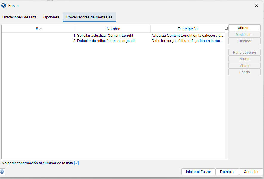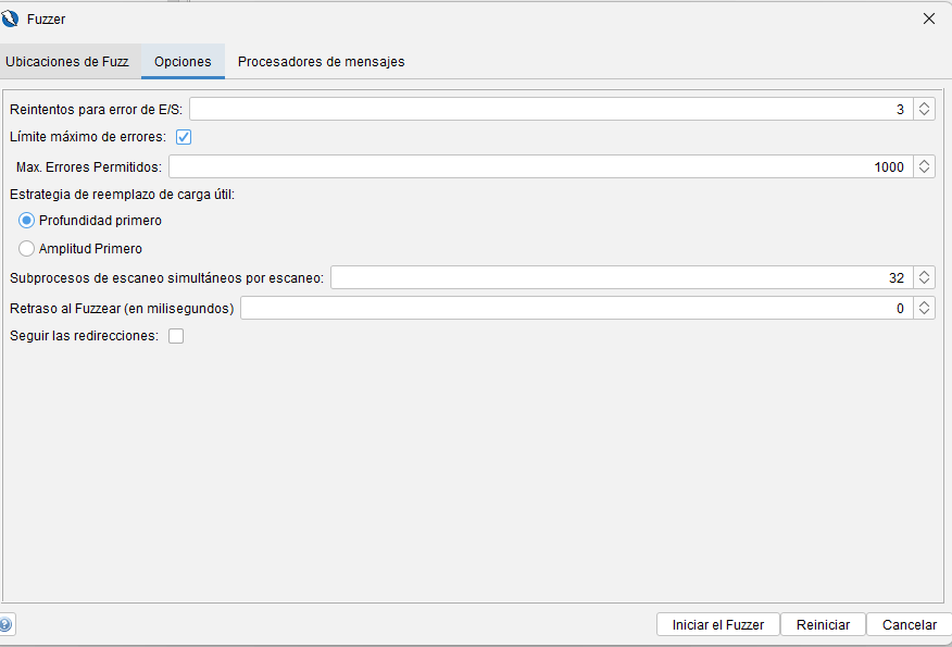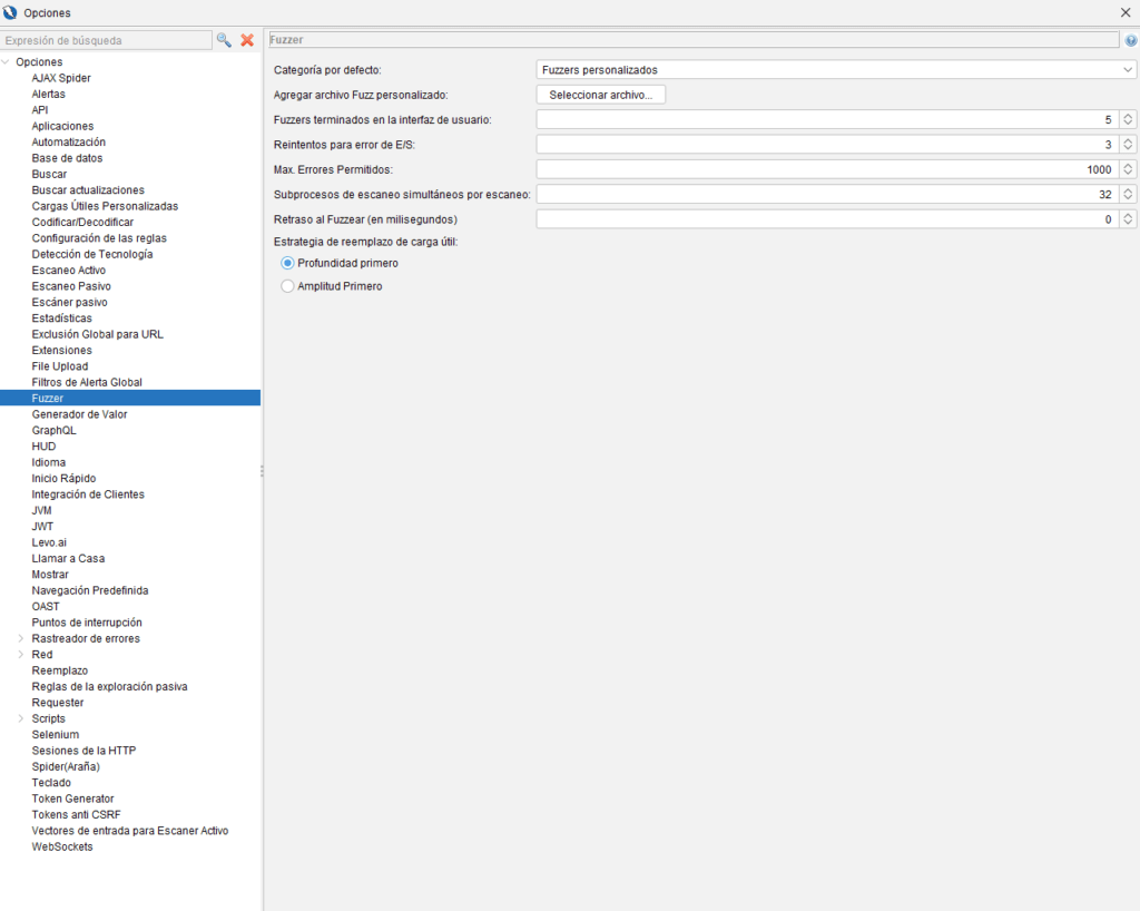 - Durante configuración de fuzzing: