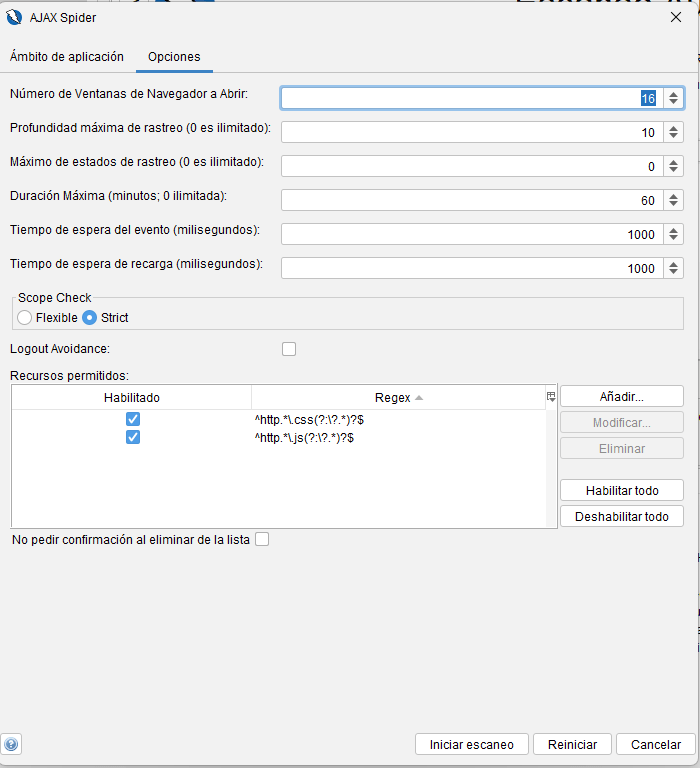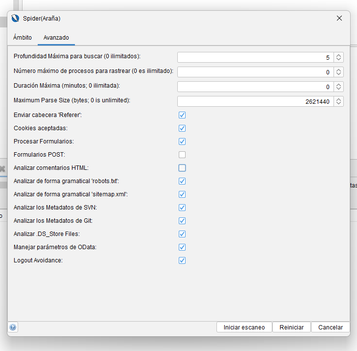 - AJAX Spider: más lenta, usa navegadores reales para analizar el DOM, ejecutar JS y detectar solicitudes AJAX. Ideal para SPAs (Single Page Apps).